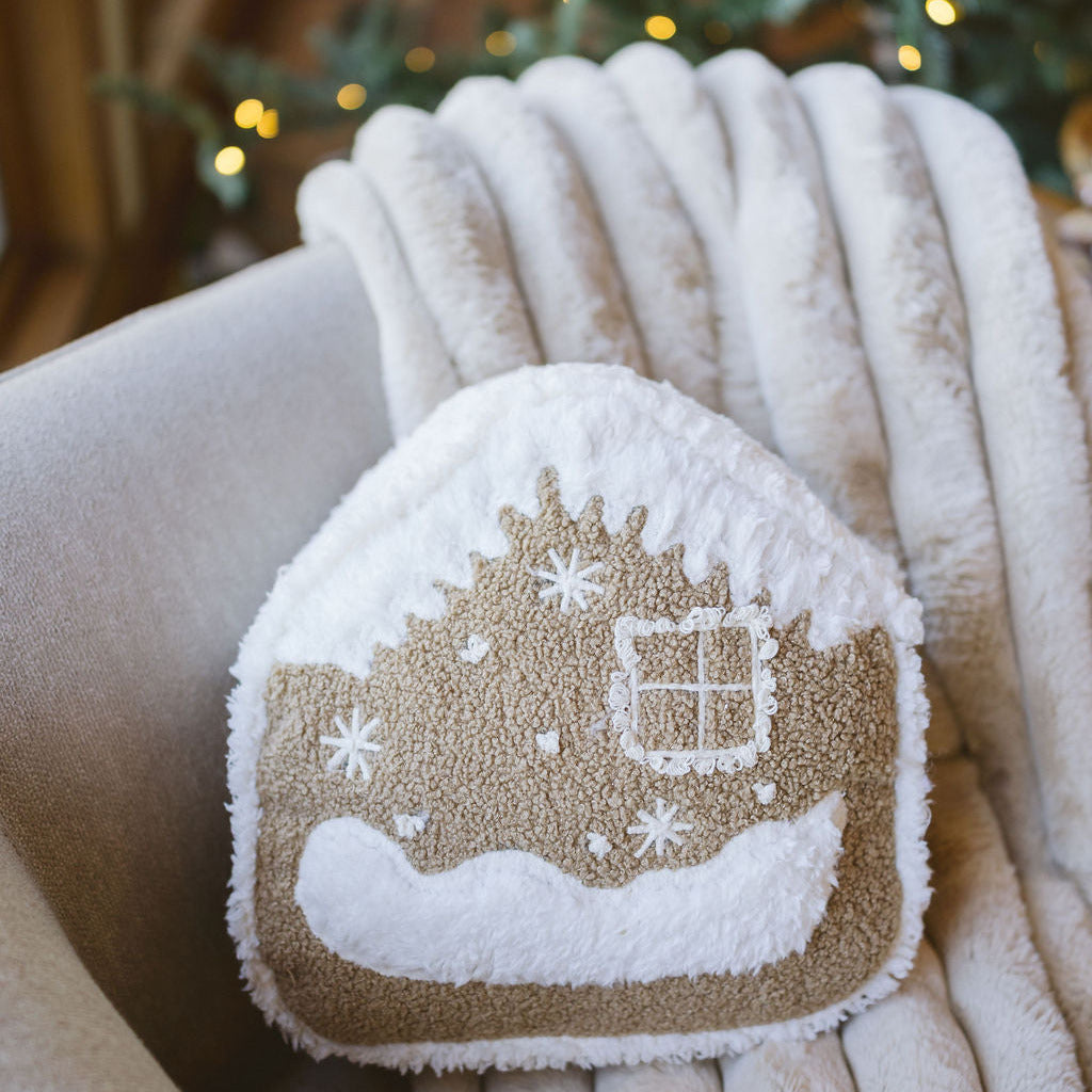 Bouclé Gingerbread House Pillow
