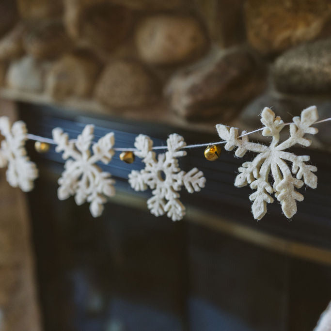 Wool Felt Snowflake Garland with Gold Bells