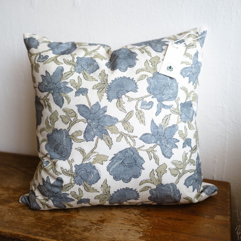 Dusty Blue Floral Pillow